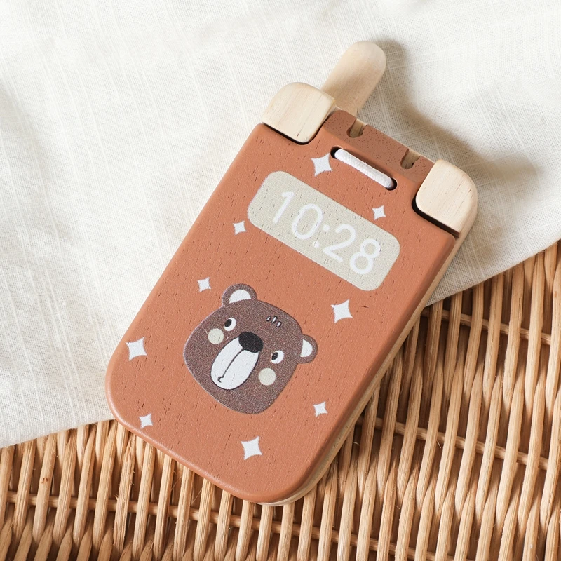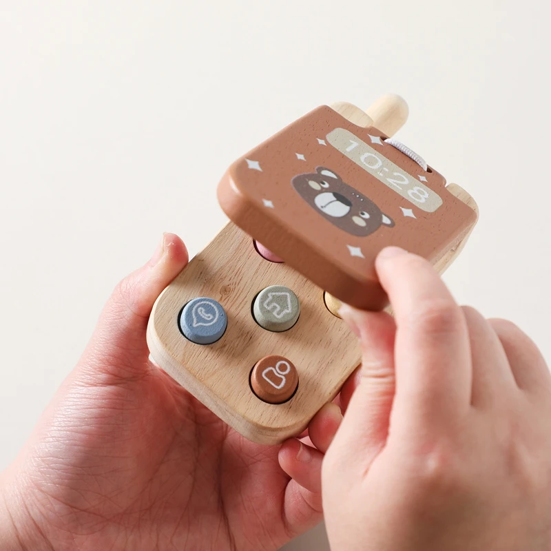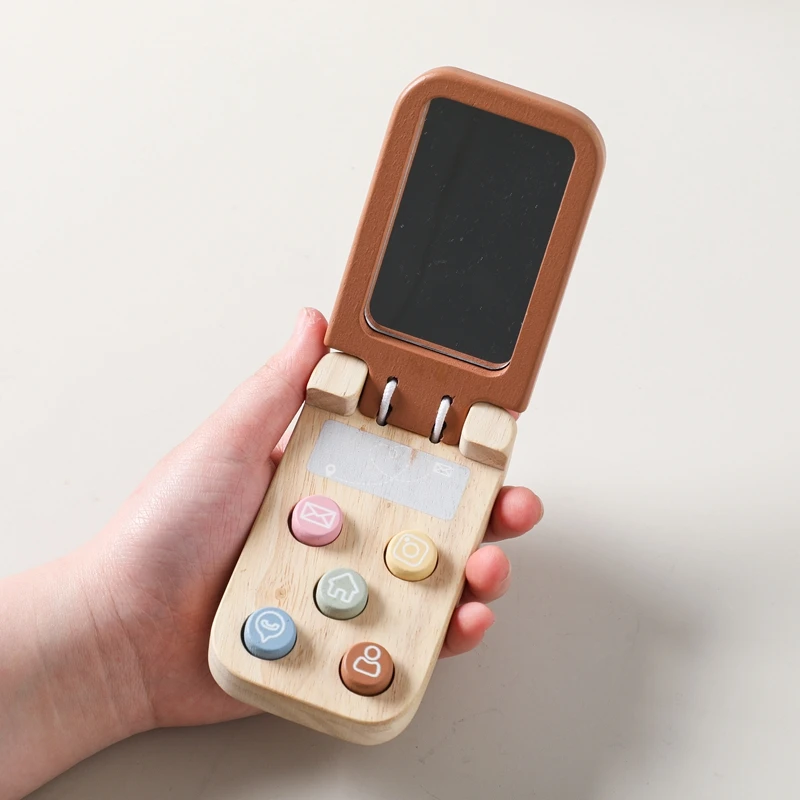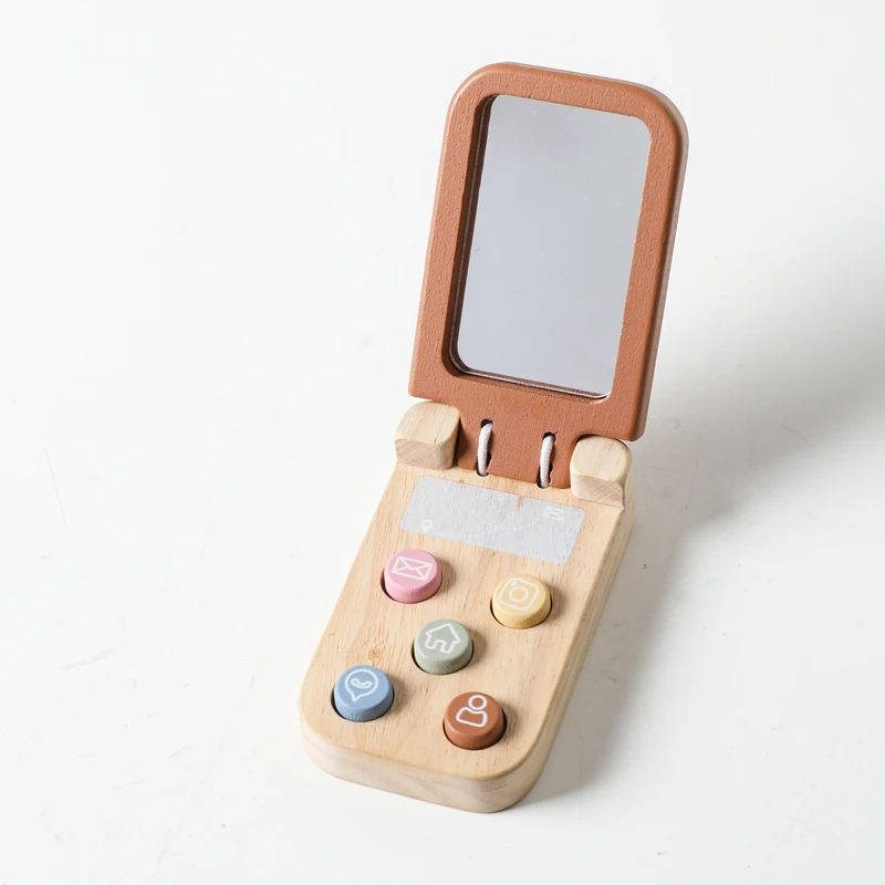 Baby Montessori Toy Cartoon Wooden Phone With Mirror The Child's Fingers Press And The Senses Touch The Toy Mobile Key Learning
