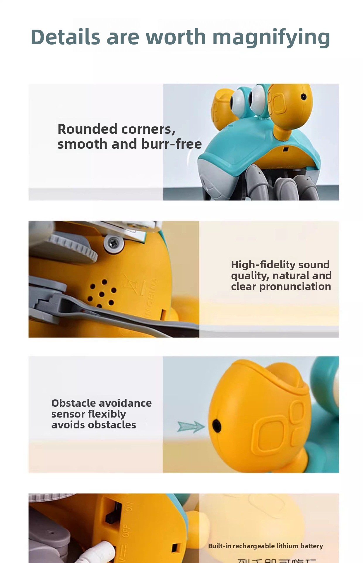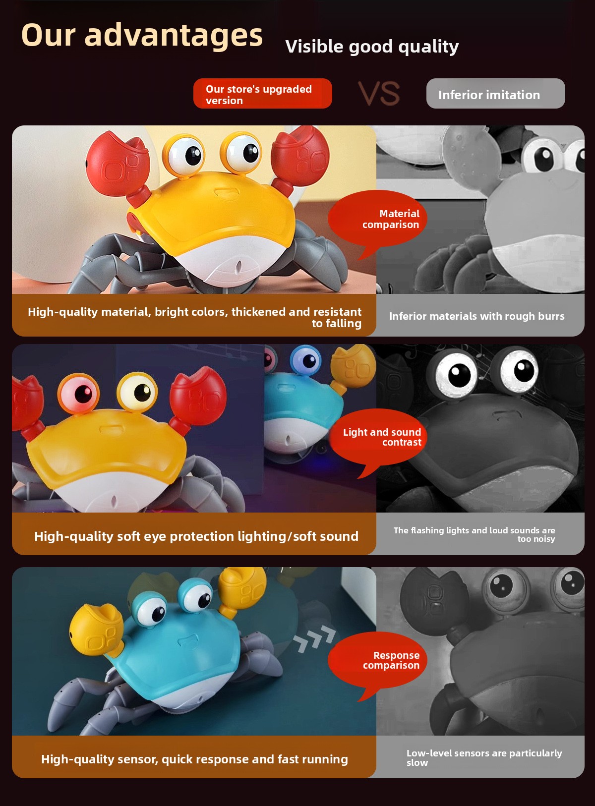 Multi-Function: Combines sound, light, and crawling movement for entertainment.
